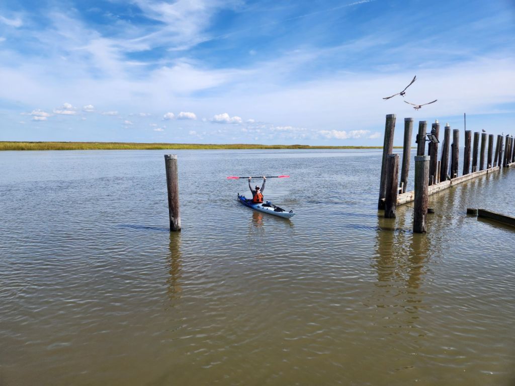 There was another long stretch near Cambridge, Maryland that had no public access and I was able to find an Airbnb that was exactly halfway between the nearest boat ramps. I didn’t book this place, but I did request permission from the owner, Lisa, to launch my kayak there. She was so accommodating, didn’t charge me a dime, and even let me use her bathroom. Check out her property here: https://www.airbnb.com/rooms/17871330