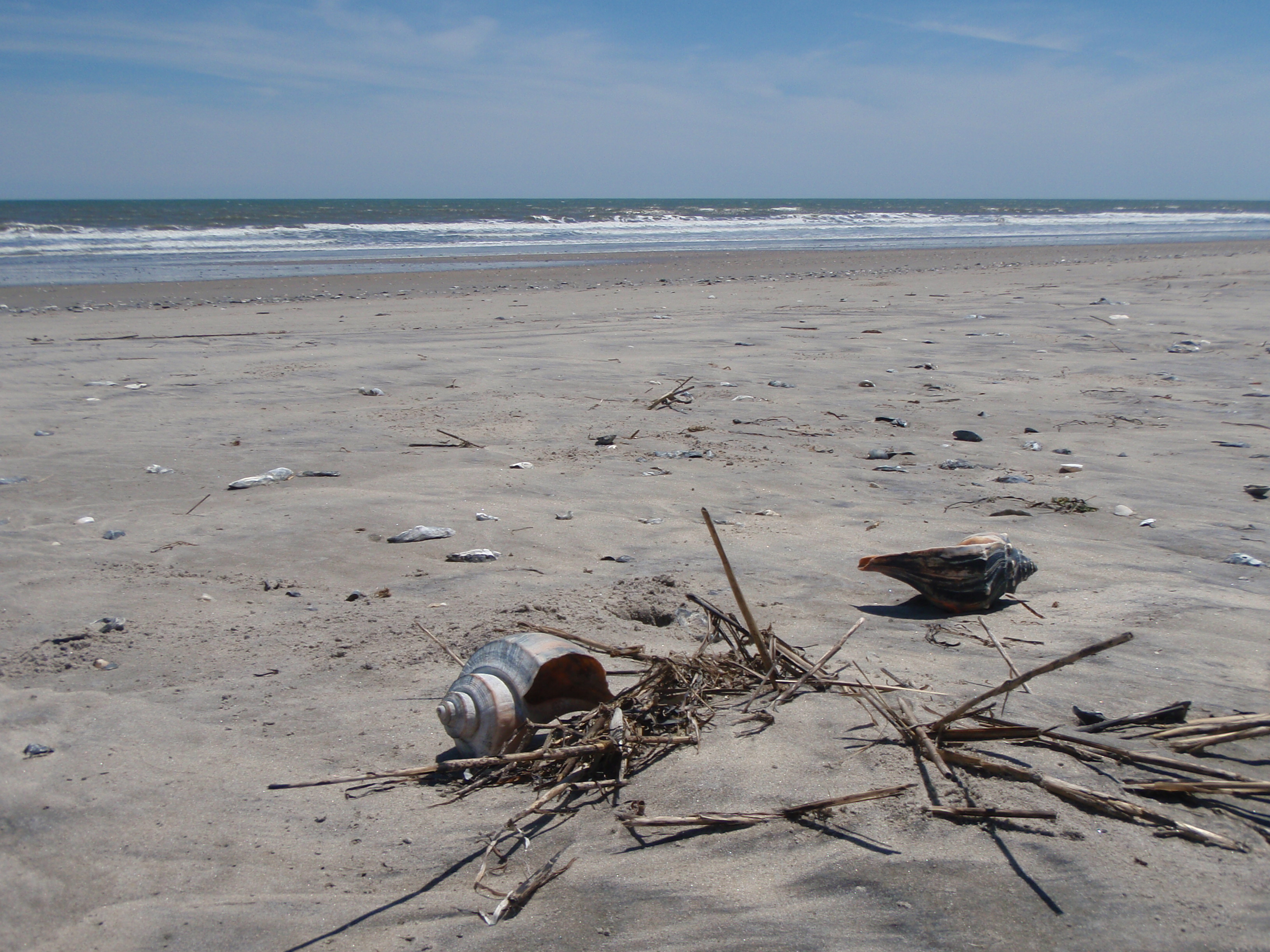 My original plan was to paddle along the back side of Metompkin as I headed south, but I felt I needed to get closer to the mainland, away from the mud flats and in deeper water. I don’t remember much about the next 3 miles. It was typical paddling, across open water. I do remember seeing 2 HUGE sting rays though. And of course I was crossing my fingers that I didn’t have to get out and walk anymore!