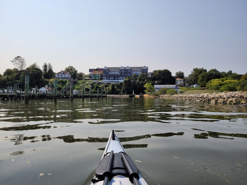 The winds were almost nonexistent at this point, and boat traffic was minimal, so paddling across the mouth of the Sassafras River was smooth. Once I got to Grove Neck, I took photos of where I turned around, so that when I eventually approached this spot from the north, I would know how far south I needed to paddle (you know, to connect the dots, so to speak).