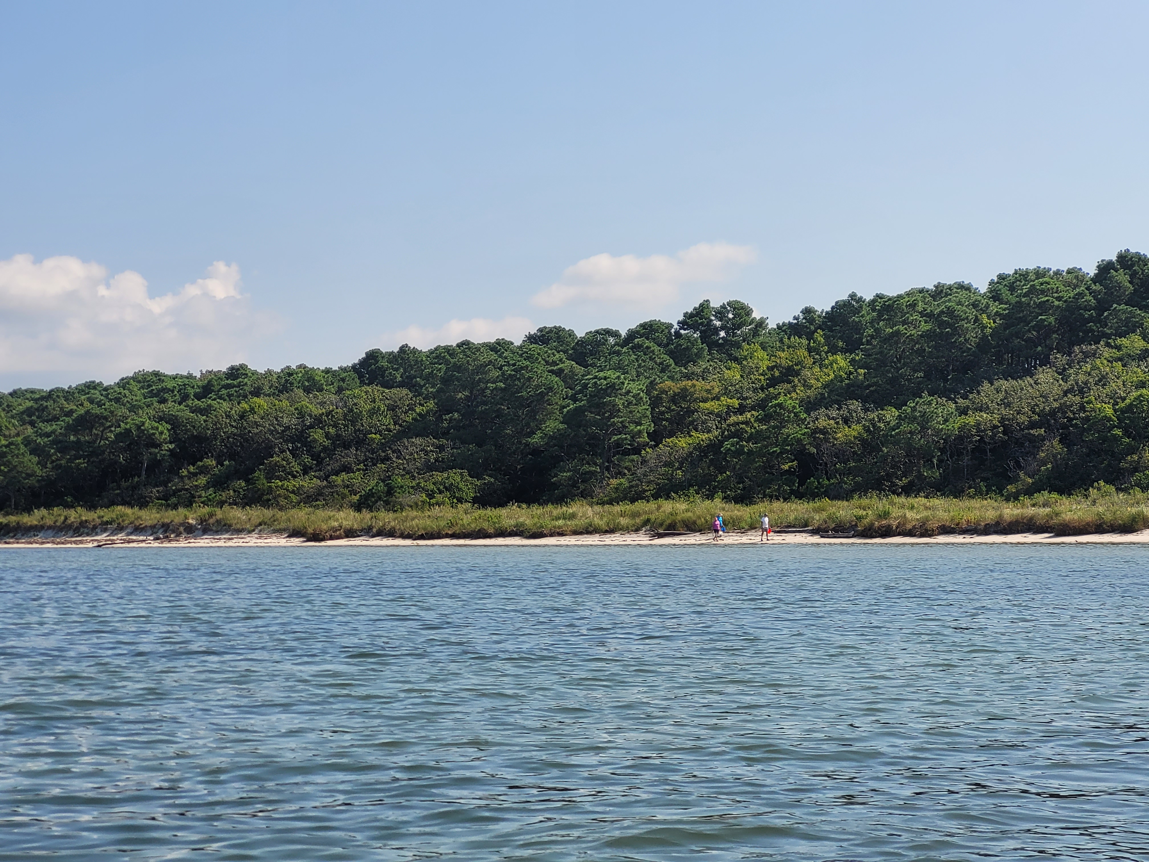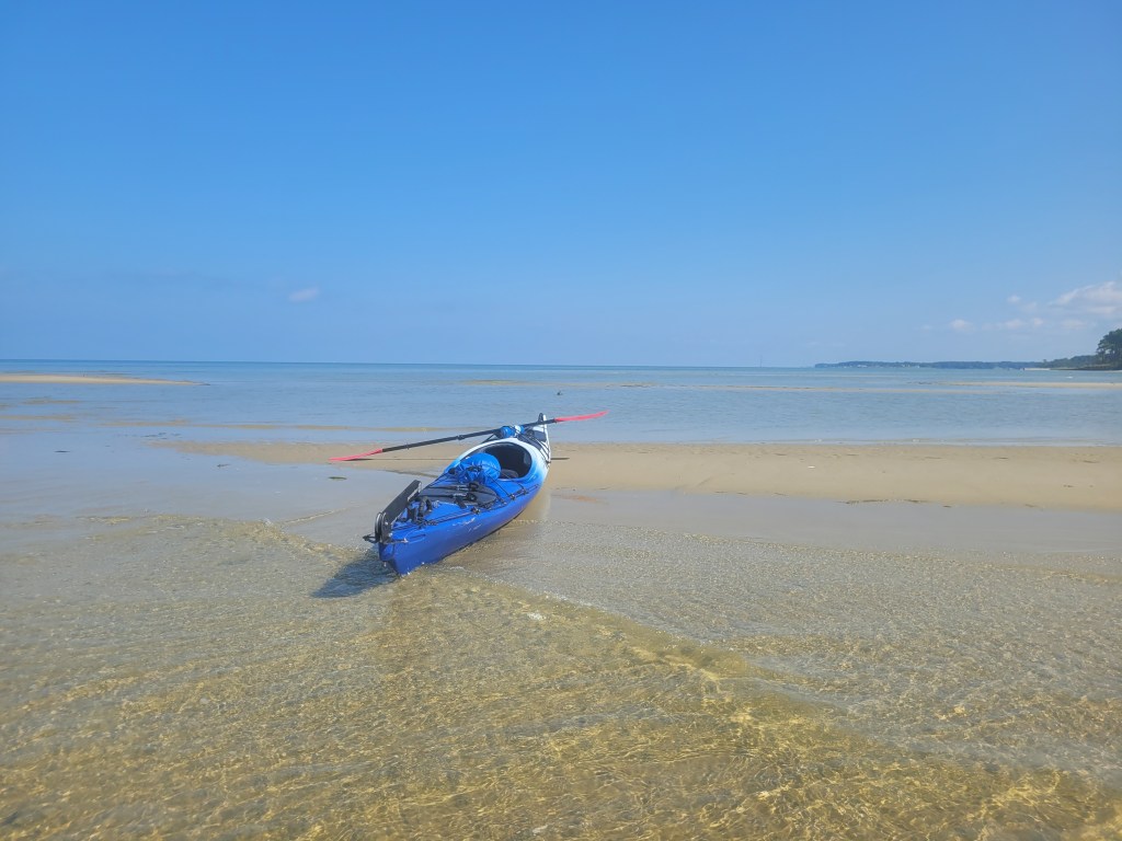 And although there were some steep cliffs along the edge of Grove Neck, there was a small beach right by my turnaround spot, allowing me to get out for a minute to stretch and catch my breath (the beach was also covered in that grass).
