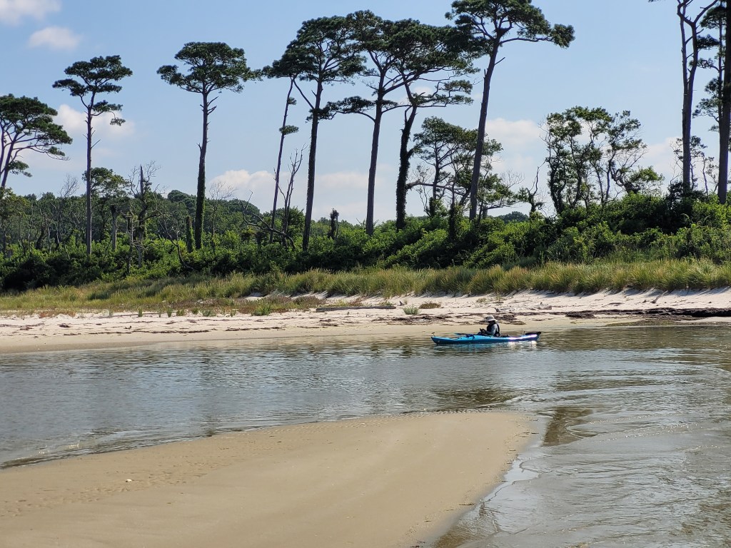 On the way back, I decided to hug the coast a little more than I did on the way down. I saw on the satellite images that there was a small marsh creek and some beaches off to the east that I wanted to explore. I paddled into the calm waters of the creek, but unfortunately, the beaches were covered in “no trespassing” signs. I obeyed orders and never got out on the beach, and instead, headed back to the boat ramp to call it a day.
